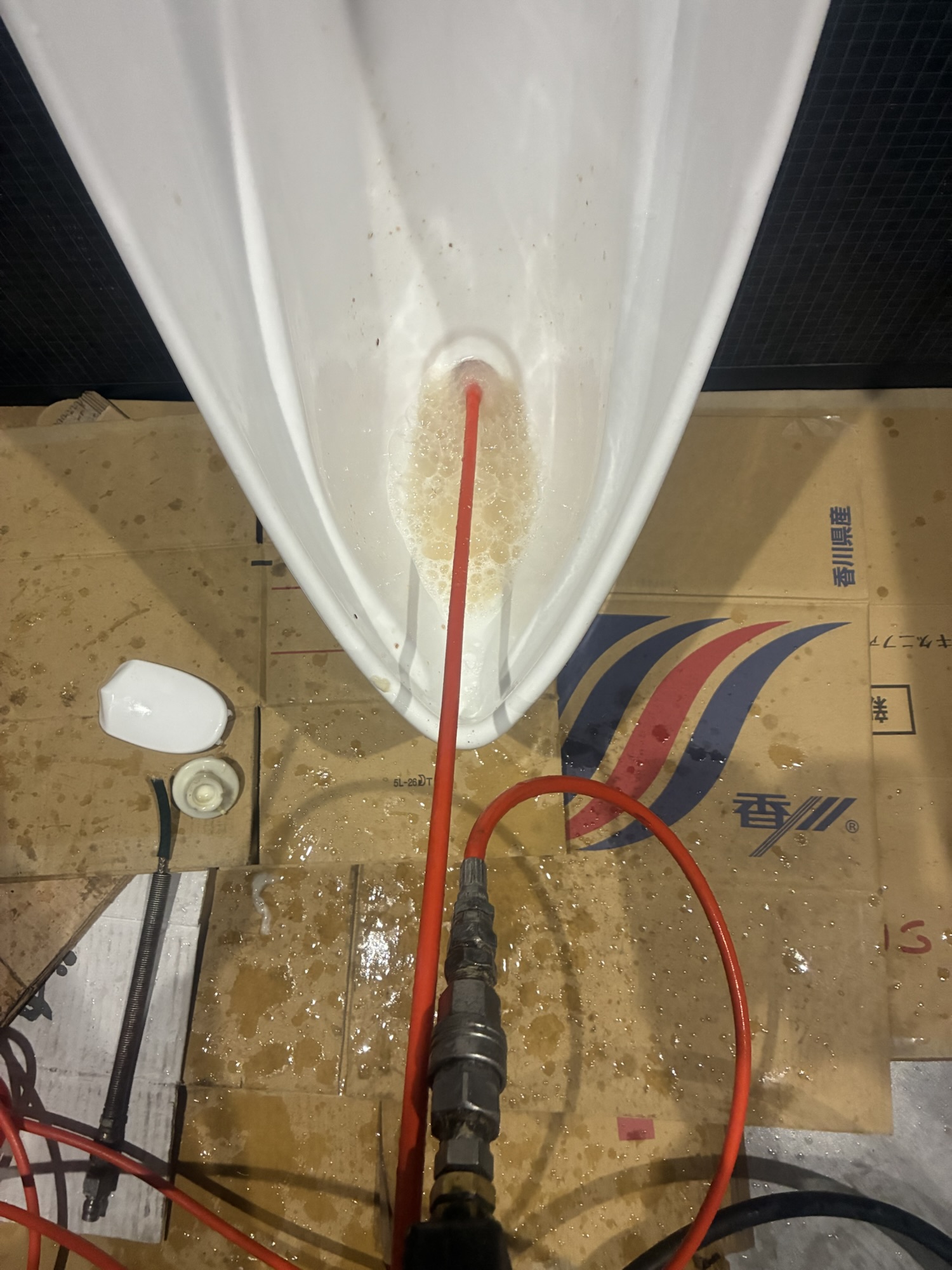 岩出市店舗にて小便器詰まり高圧洗浄詰まり除去