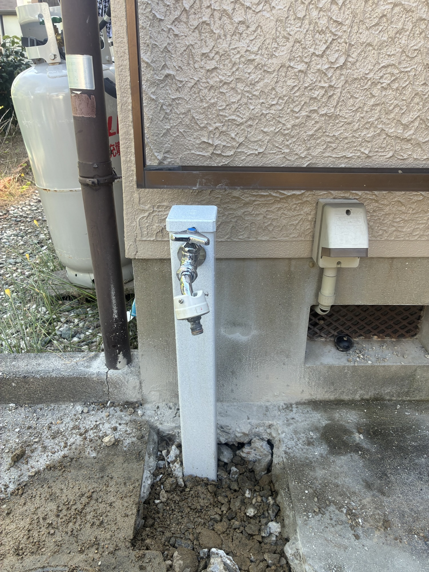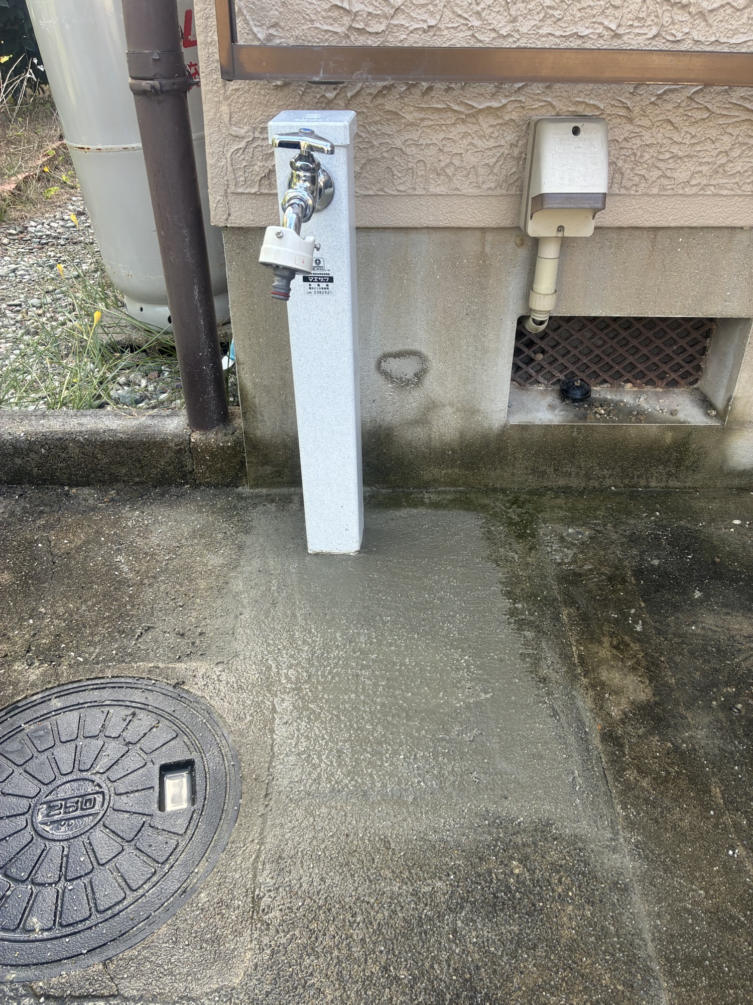 紀ノ川市戸建にて洗濯水栓交換(壁ピタ水栓)