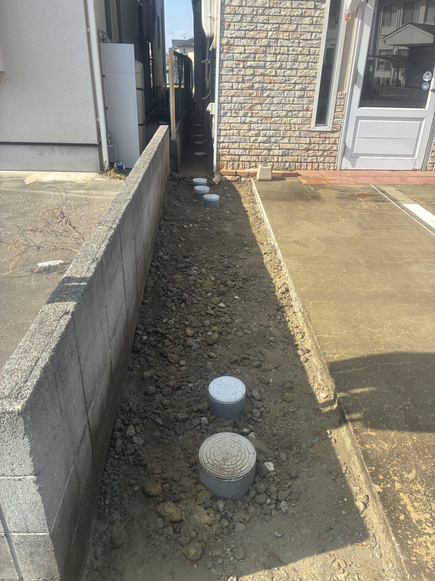 岩出市戸建にて屋外排水管及び雨水管引き直し工事